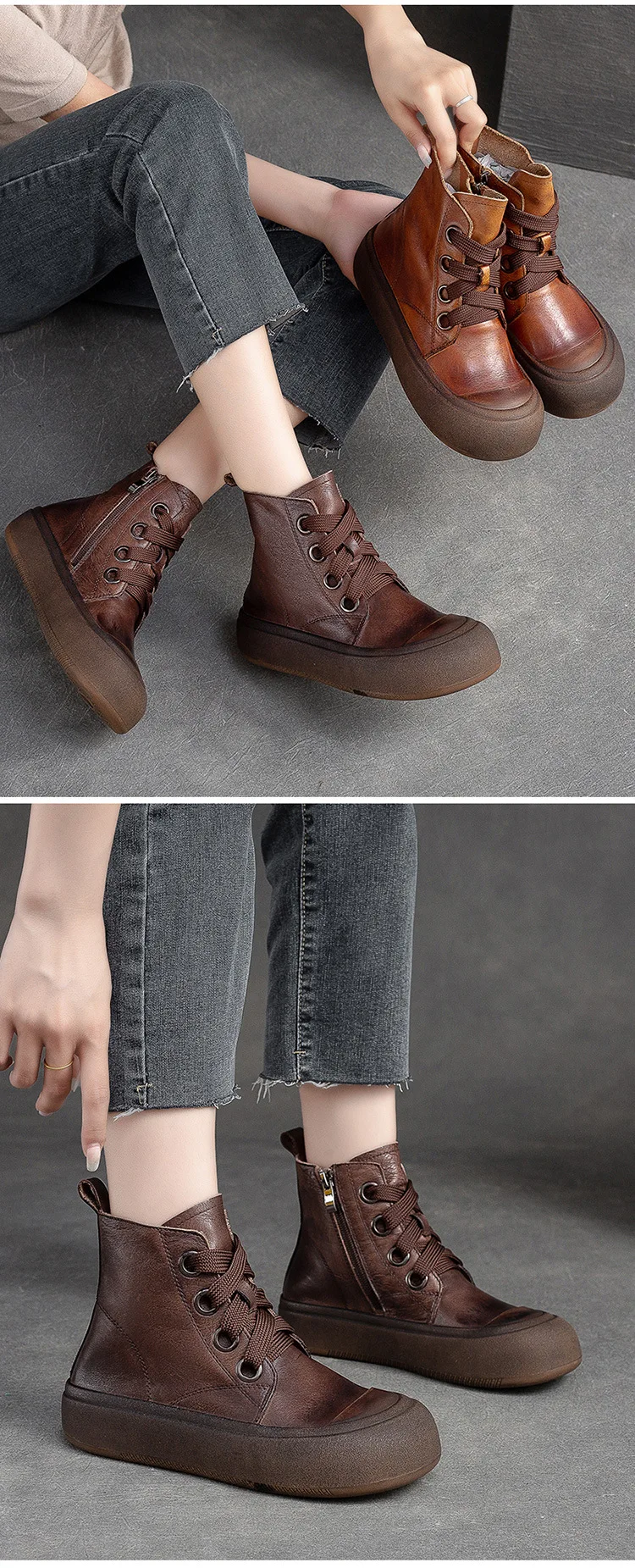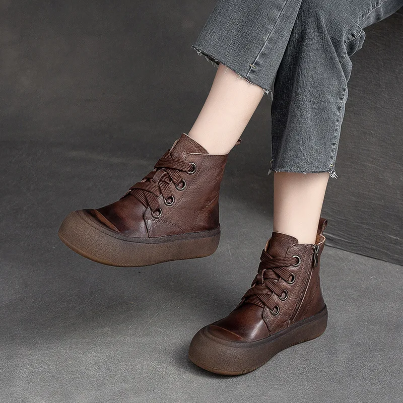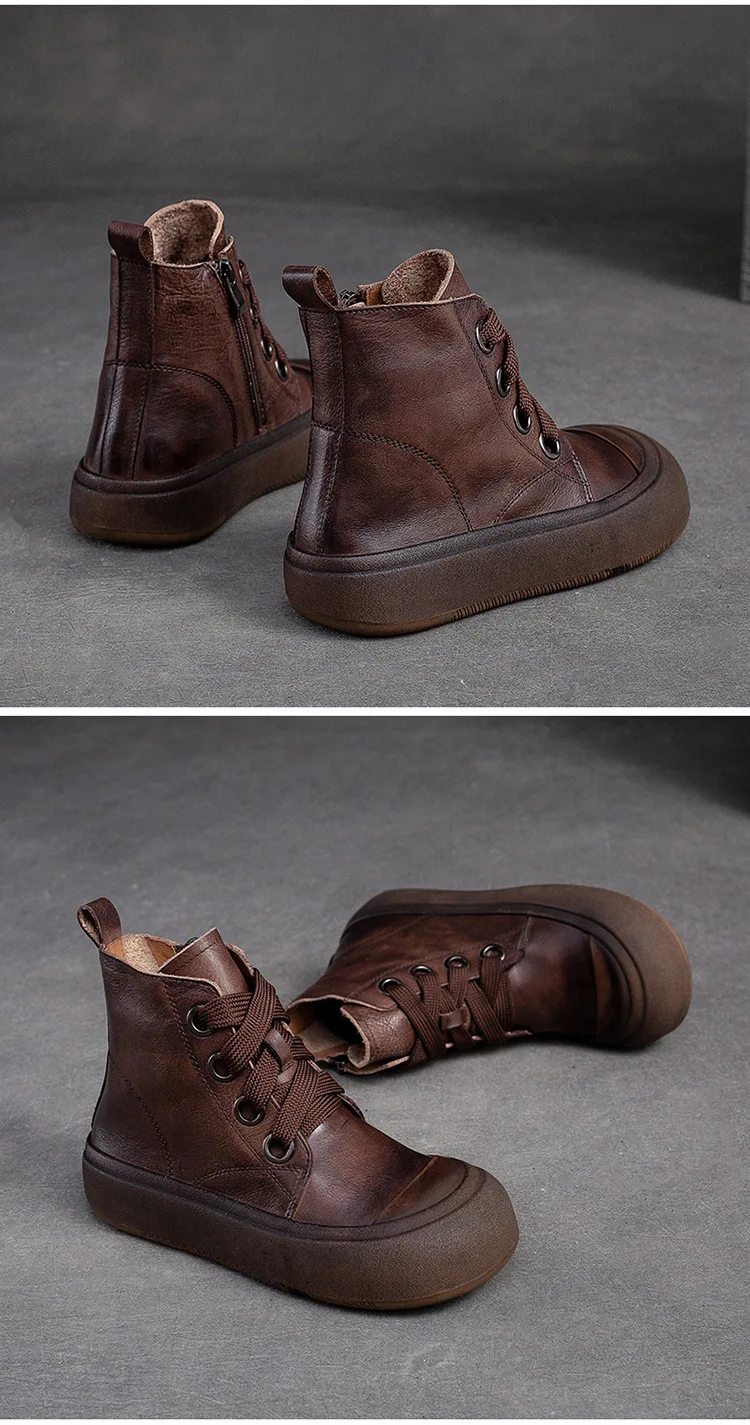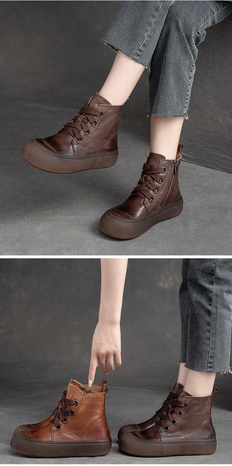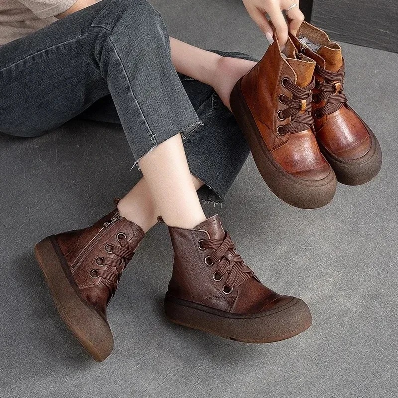 2025 Genuine Leather Marton Boots Women Winter New Double Zipper Women’s Ankle Boots Platform Thick Heel Motorcycle Boots Women