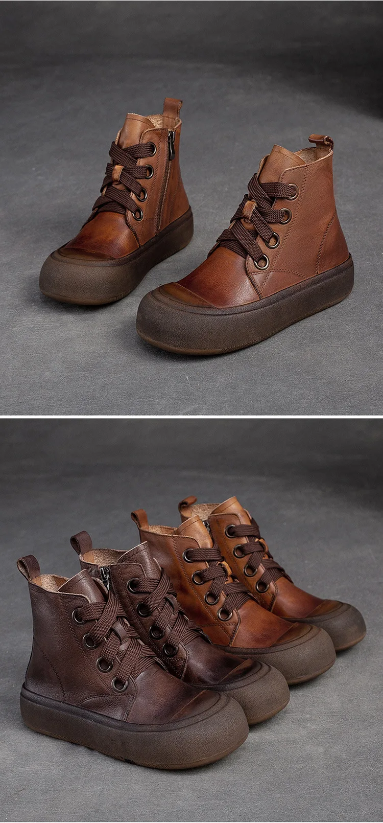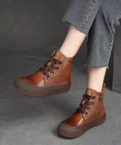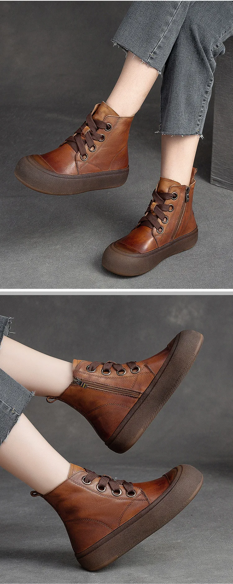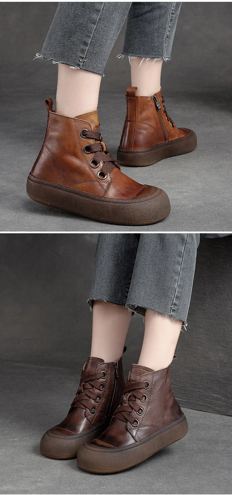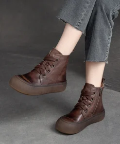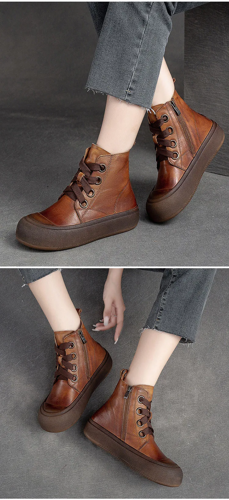 2025 Genuine Leather Marton Boots Women Winter New Double Zipper Women’s Ankle Boots Platform Thick Heel Motorcycle Boots Women