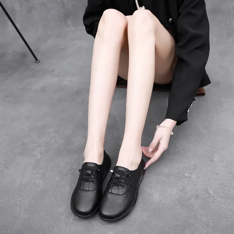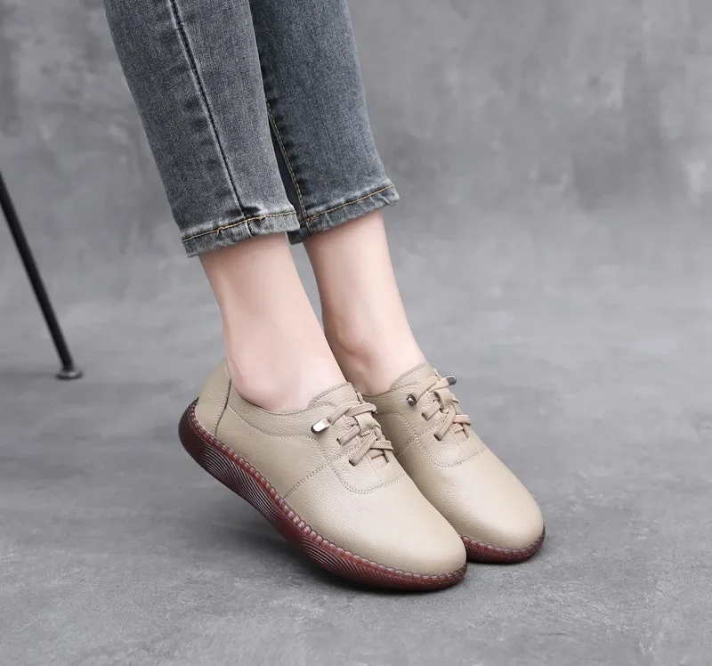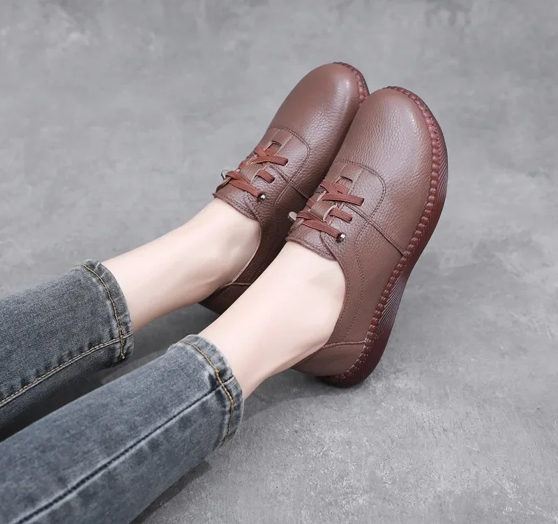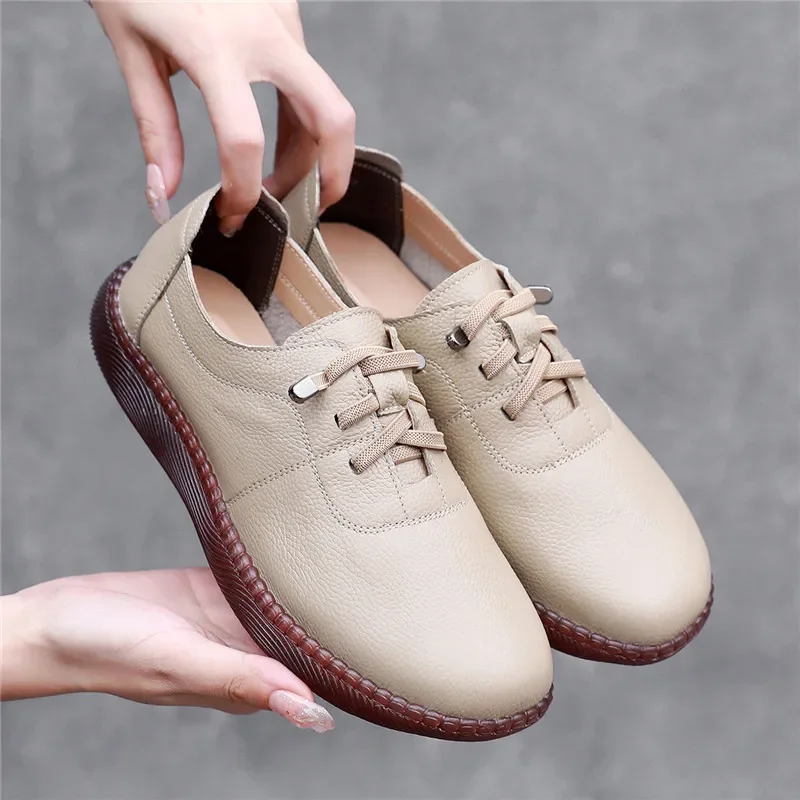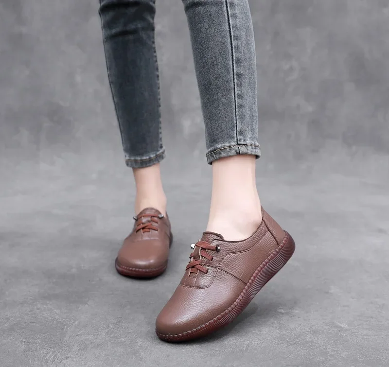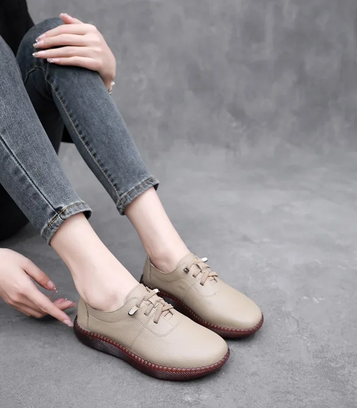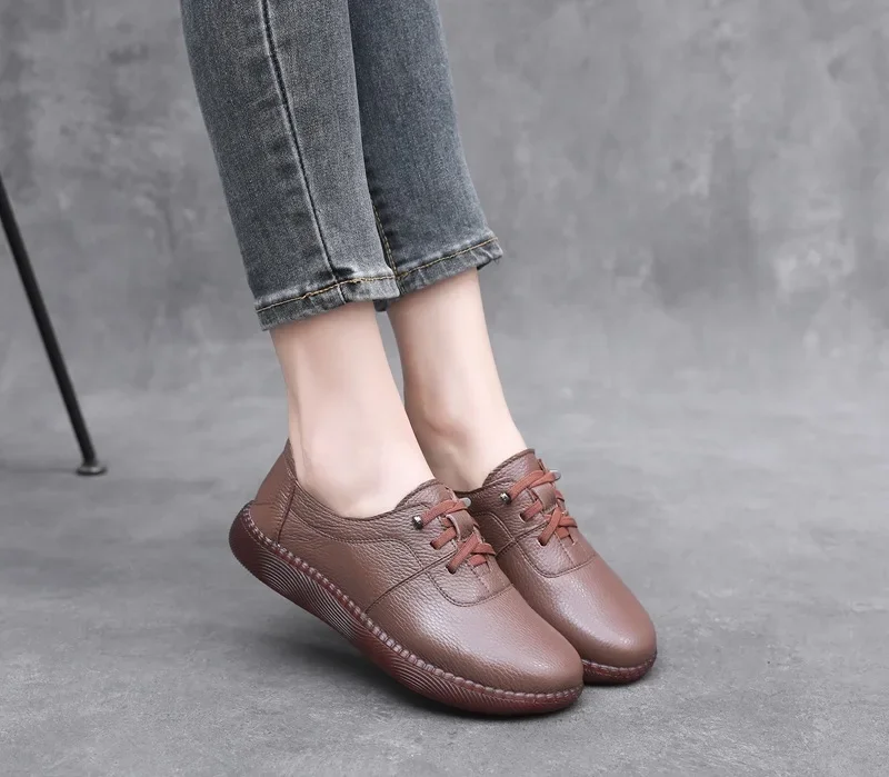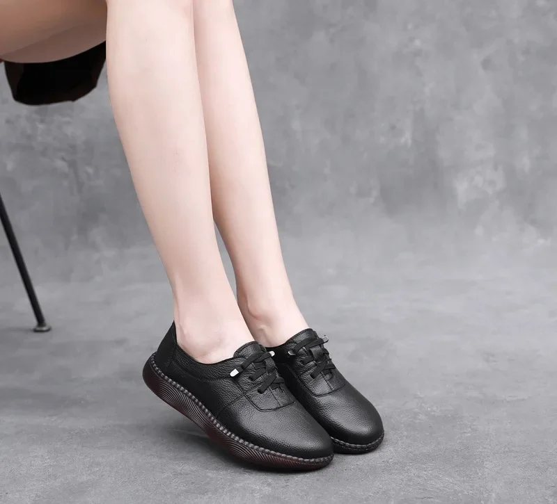 2025 Lace-up Soft Cowhide Sneakers Flat Shoes New Comfort Soft Sole Casual Sneakers Women Leather Shoes Tide