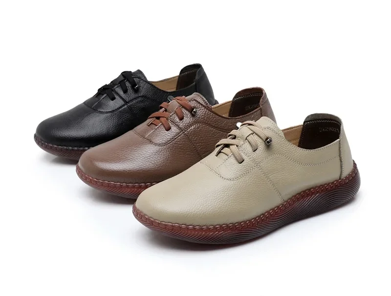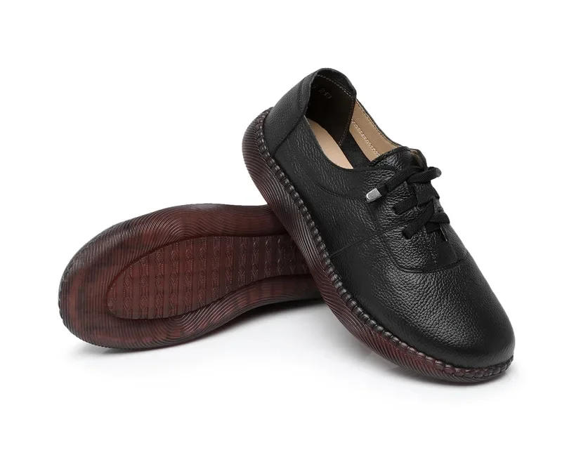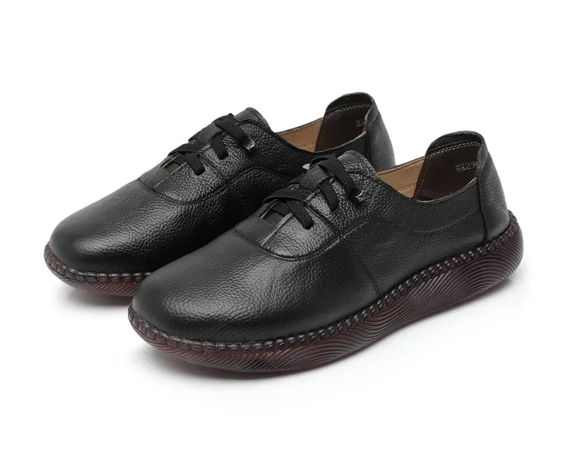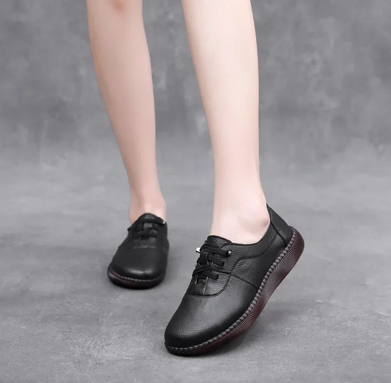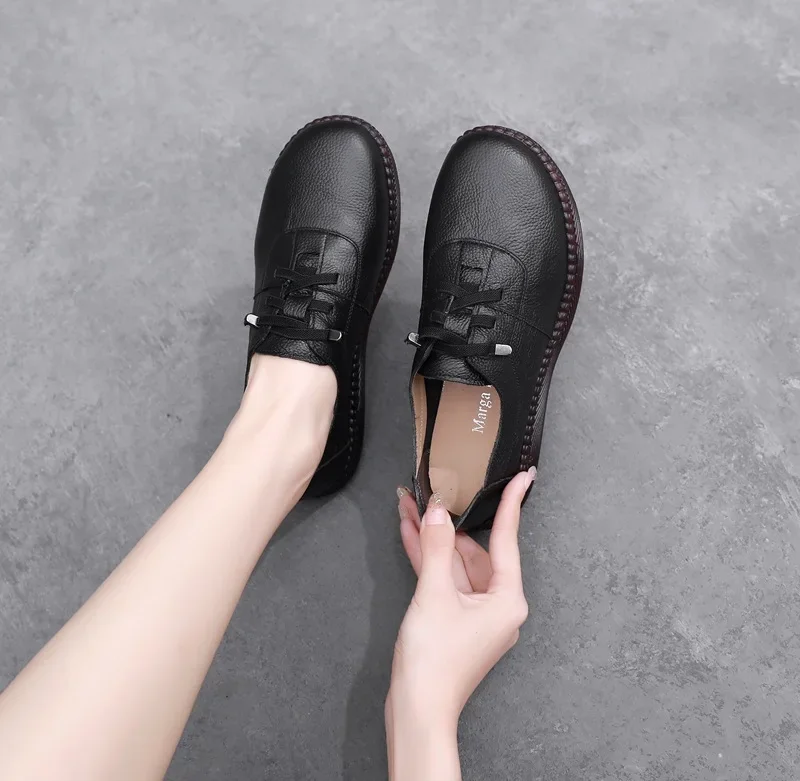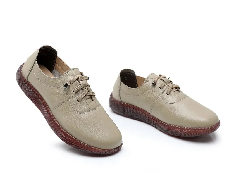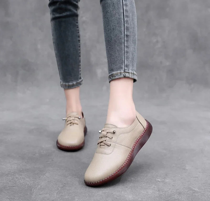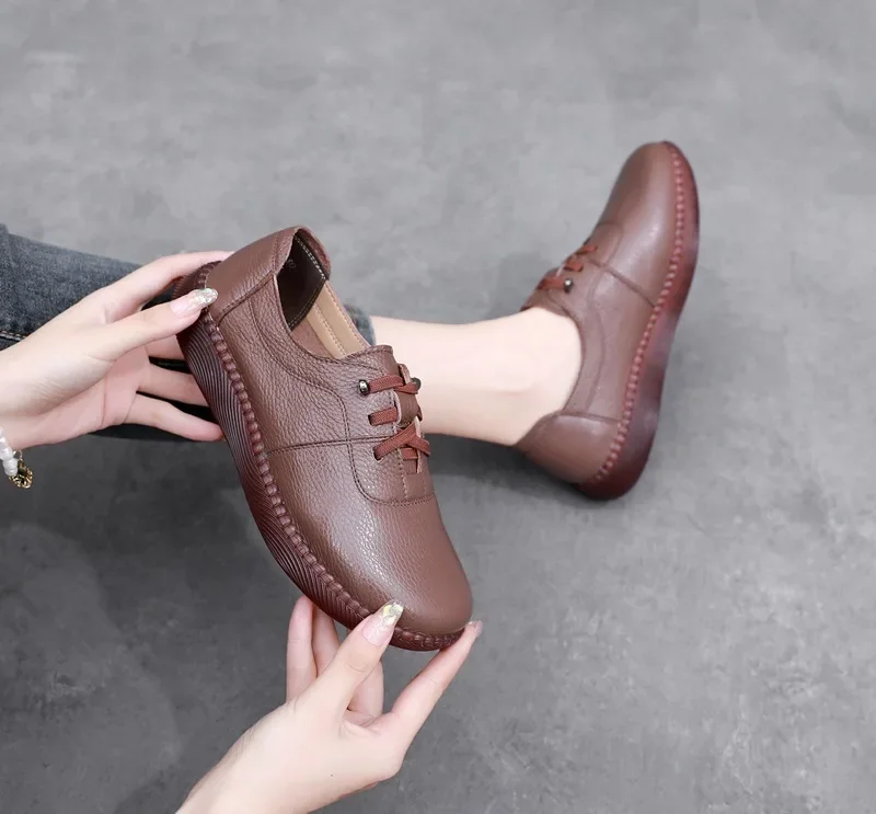 2025 Lace-up Soft Cowhide Sneakers Flat Shoes New Comfort Soft Sole Casual Sneakers Women Leather Shoes Tide